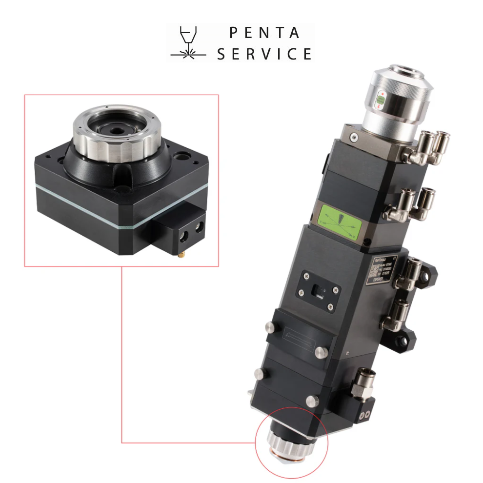 Нижняя часть лазерной головки изготовлена из специального сплава с геометрическими размерами, обеспечивающими значительно меньший износ в ходе эксплуатации даже на лазерах большой мощности. Благодаря увеличенному сроку службы, без замены можно обойтись в течение длительного времени. Сопла в сборе отличаются своей стойкостью к налипанию частиц, образующихся в процессе лазерной резки металла.